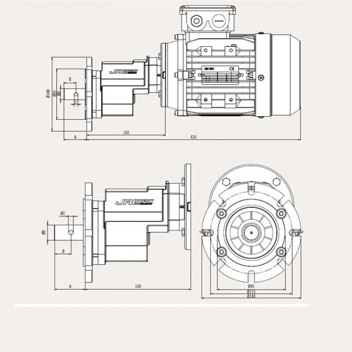 - Diámetro de Brida salida: 140 mm (N=95)